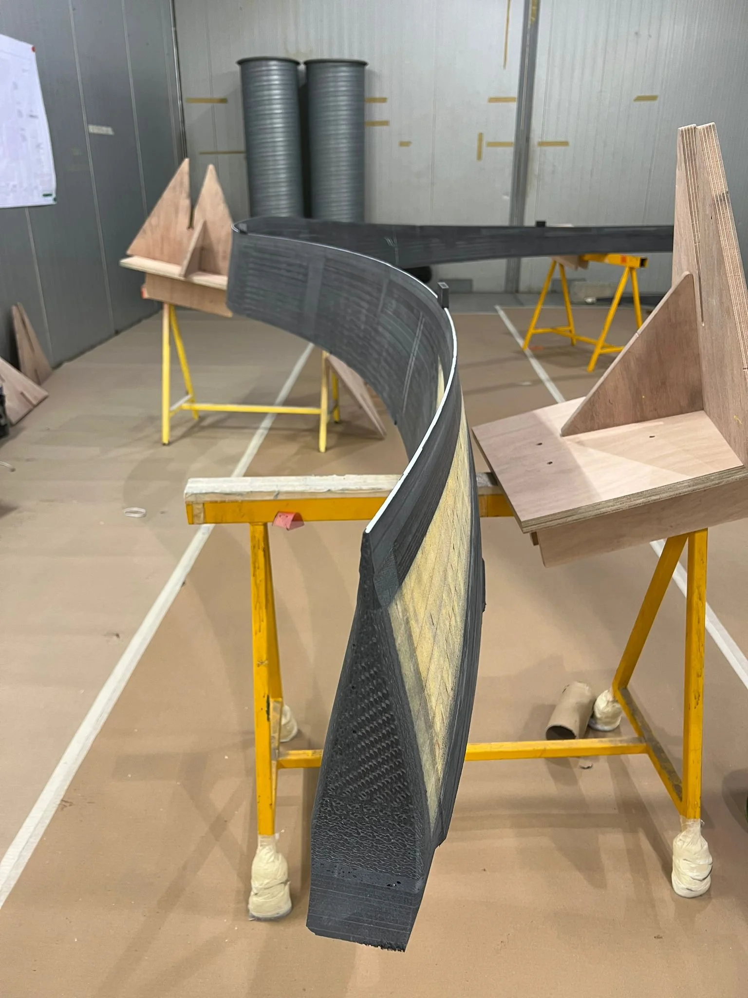 Our foils are being built remotely, at CDK in Brittany. We decided to use this yard because they had already built our sister foils for Kevin Escoffier. It makes total sense to reuse the tooling and go with a team that have already had a ‘trial run’. I went to visit one of the foils mid-production when I was in France this month. It’s huge and beautiful. The foils are built in strips end on rather than top down, the strips are then built up from leading edge to trailing edge, the finished foil can be up to 900 ply of carbon layers at its thickest point. The resultant blocks are milled to the final shape and then wrapped in carbon. They are breath taking, the detail is fine and they look fragile although designed to lift over 7 tonnes of boat.