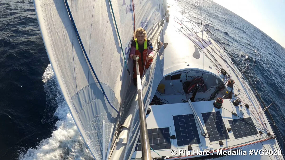 Yesterday was a tough day, it was full on constant work. Eventually I saw 50 knots, just as the front finally passed overhead, at around 0700 yesterday morning and the change was brutal. The sea state after the front was horrendous, not helped by the fact it takes about an hour to empty the ballast out of the bow of Medallia and so not only were the waves big, breaking and coming from strange angles, but we pretty much either went through them, due to having not enough sail up and too much weight in the bow - this meant every time I tried to do anything on deck, I was constantly dealing with huge, slow moving walls of water that were big enough to lift me off my feet as they came down the deck. They also filled up the cockpit multiple times.